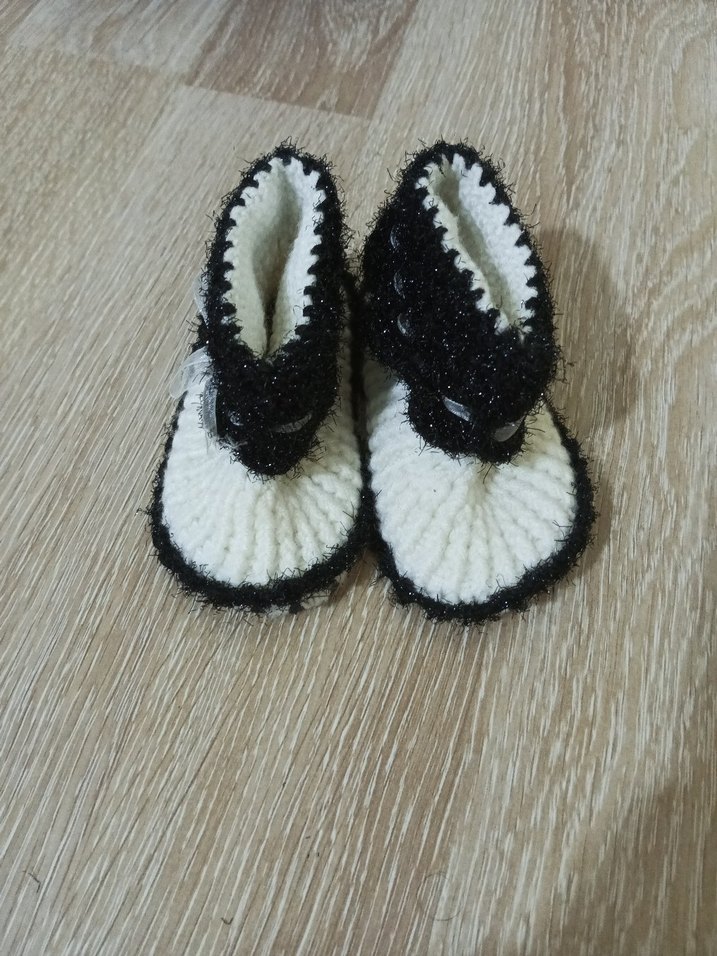 Örgü beyaz ve siyah kız çocuk botları, nakış detaylı ve konvansiyonel tarzda, yumuşak örgü kumaştan yapılmıştır.
