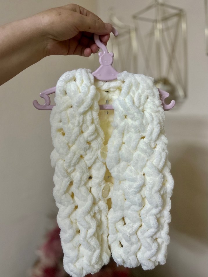 Kız çocukları için beyaz, örgü kumaştan yapılmış, halter yakalı ve kolsuz, bohem tarzda sade ve vücuda oturan yelek.İstenilen Renk ve ölcude yapilir kisiye ozel