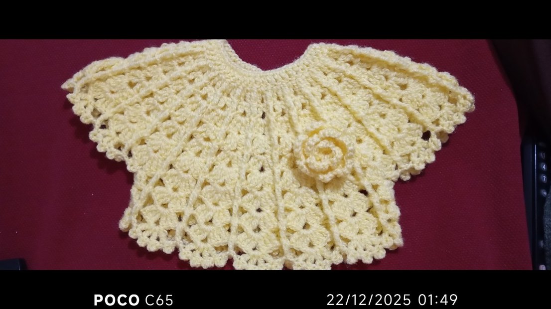 Kız çocukları için örgü krop uygun renk kumaşla birleştirip elbise yapabilirsiniz. kolsuz poncho. Kayık yaka ve nakış detaylarına sahip, renkli ve klasik tarzda.