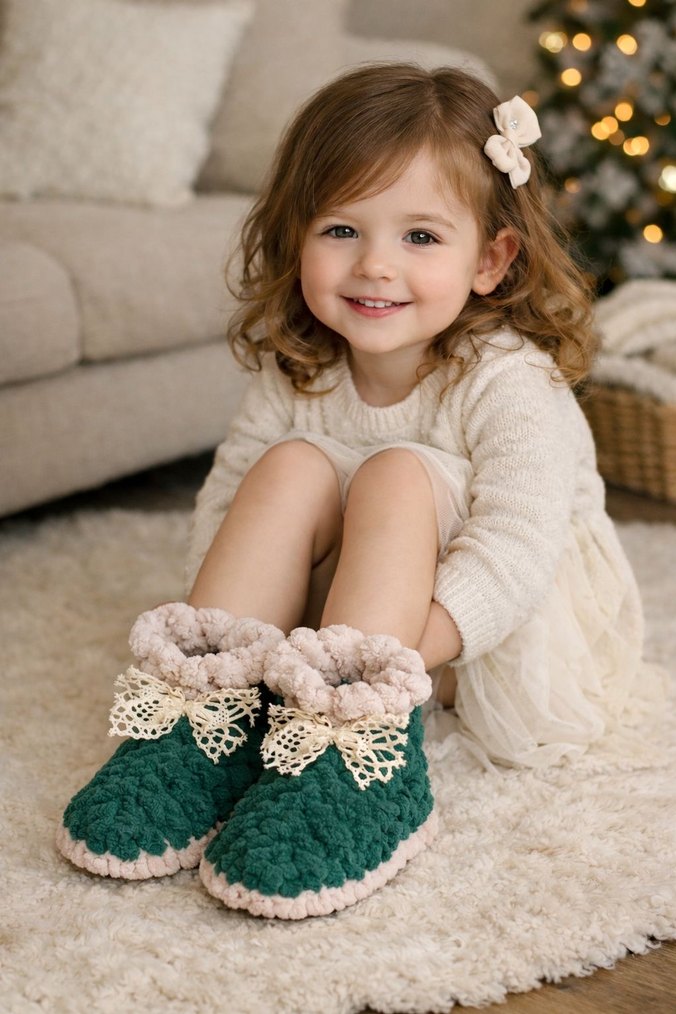Kız Çocuk Örgü Bohem Sıcak Ev Terliği