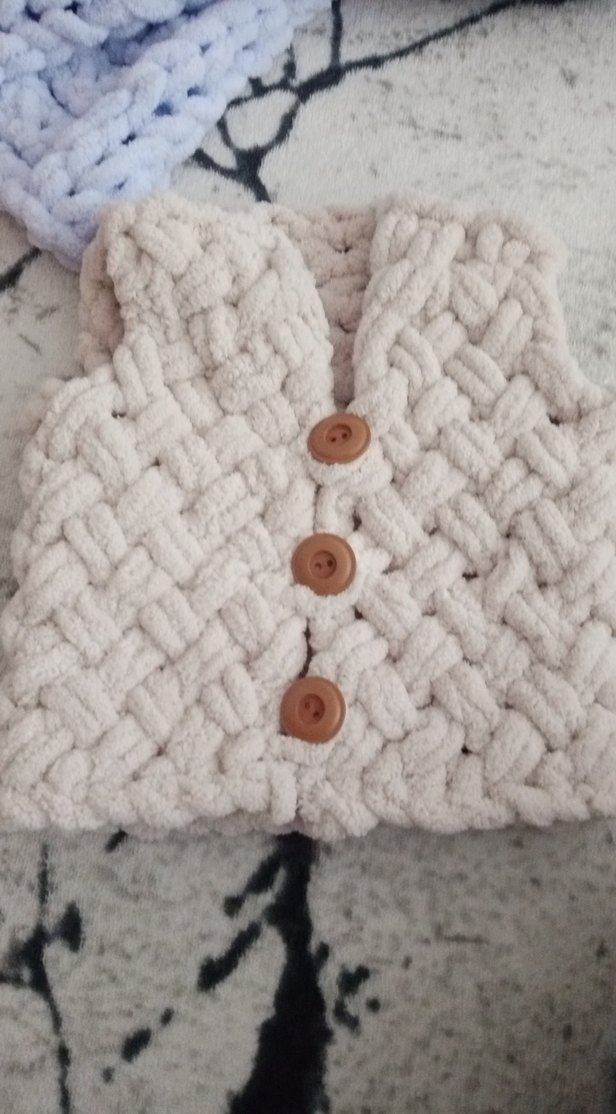 Kız çocukları için bohem tarzda, örgü dokulu, boğazlı ve düğmeli, rahat ve yumuşak dokulu fitted yelek.