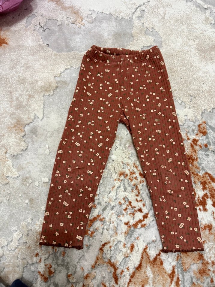 Üzerinde 4 beden yazıyor ama 3 yaşa uygun. Kızlar için örgü dokulu, kahverengi, bol kesim tayt. Koyu tonlarda batik desenli, bohem ve retro tarzda, yumuşak tekstil kumaştan yapılmıştır.