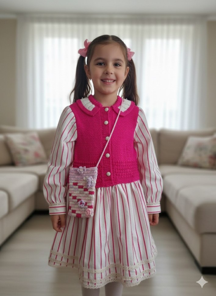 Kız Çocuk örgü Detaylı Pembe elbise