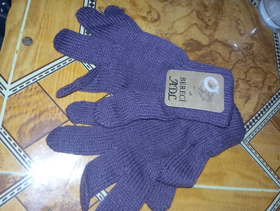 kız çocuklar için koyu mor renkli, yumuşak örgü eldivenler. Sade ve desensiz tasarıma sahiptir.