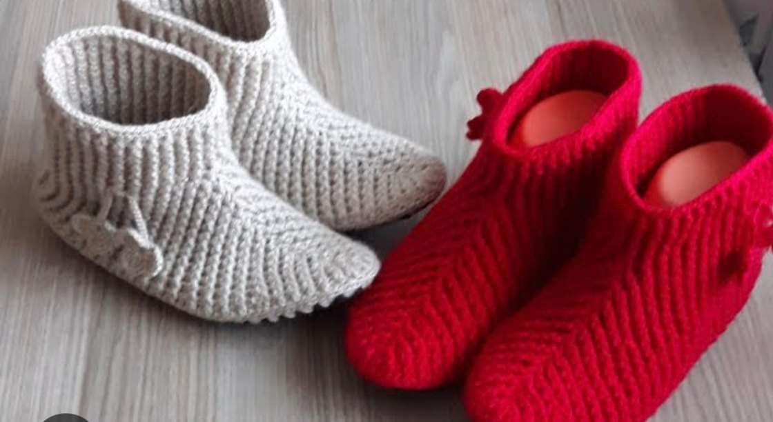 Kız çocukları için örgü, sıcak ve rahat ev terlikleri, kırmızı ve beyaz renk seçenekleriyle sade tasarım sunar.