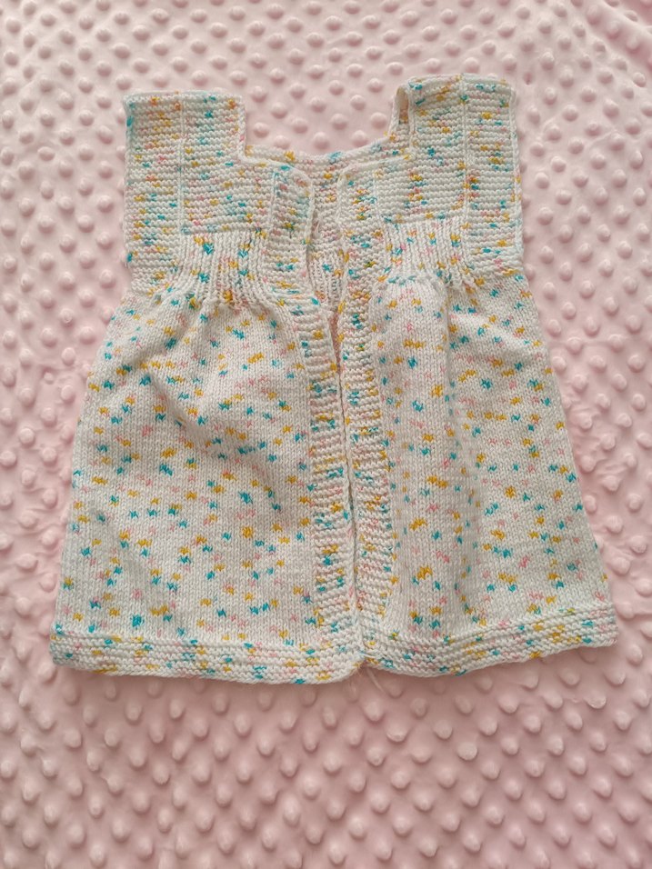 Kız çocuk, çok renkli örgü yelek. 40 cm uzunluğunda