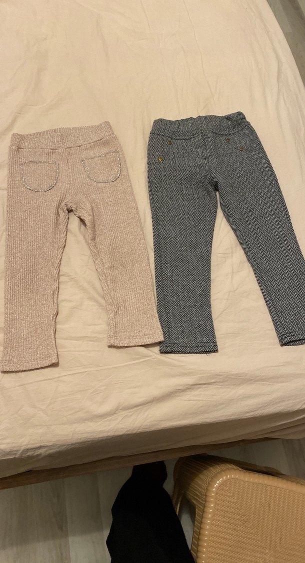 Kız çocukları için örme, gri ve dar kesim taytlar. Yumuşak ve rahat bir his sunar, desensiz sade tasarım. İkisi 100
