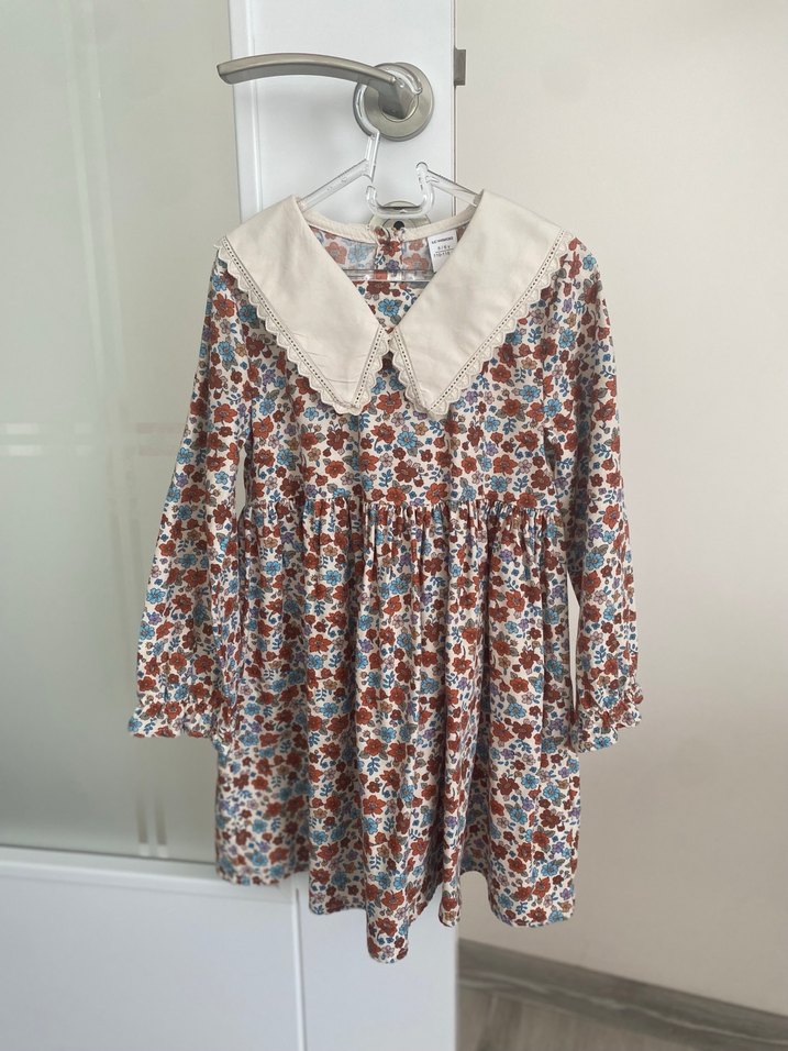 büyük yakası ve fırfırlı detayları ile bohem tarzını yansıtıyor. Pastel çiçek desenlidir.5-6 yaş içindir. Sadece 1 kere fotoğraf çekiminde giyilmiştir. .herhangi bir kusuru yoktur.