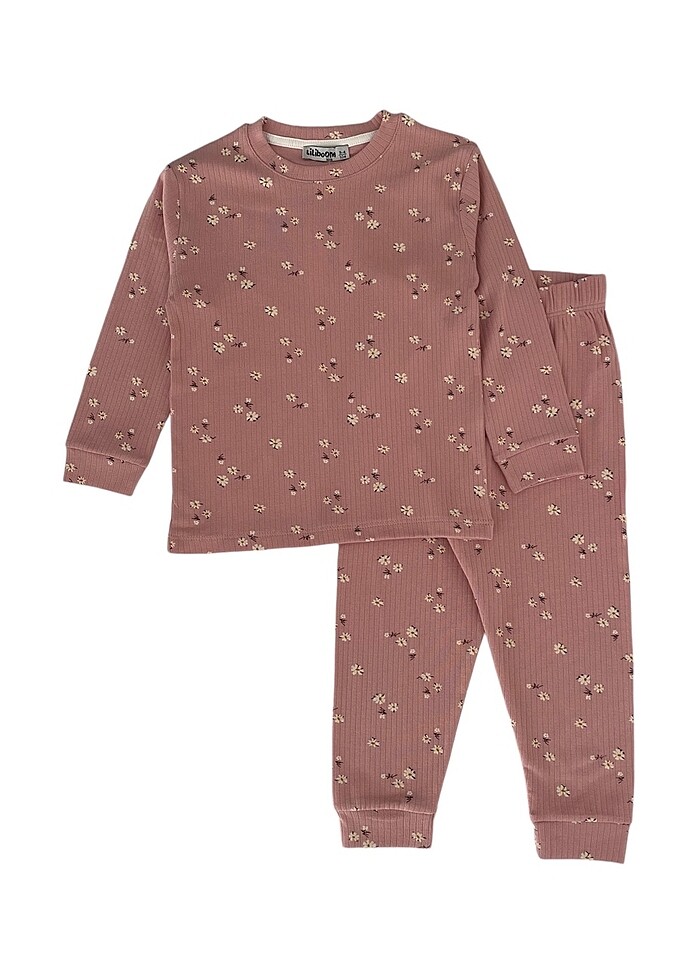 Kız çocuk pamuklu fitilli kumaş pijama takımı