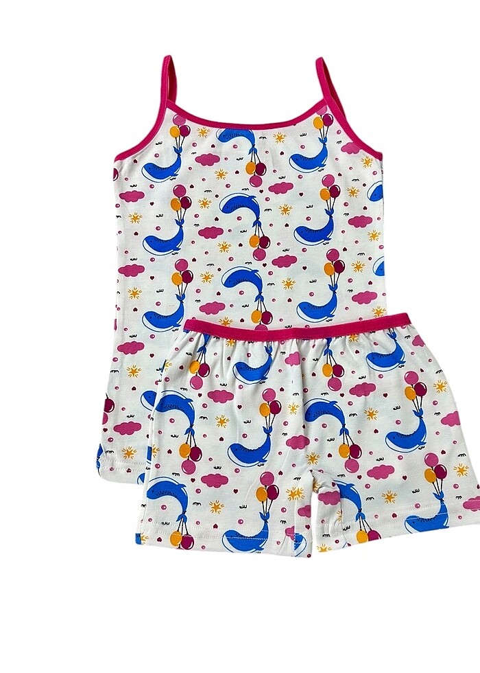 Kız çocuk pamuklu mavi balık desen atlet boxer takım