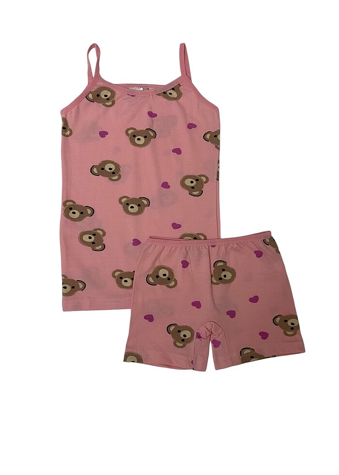 Kız çocuk pamuklu pembe ayicik desenli atlet boxer takım