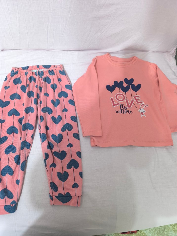 Kız Çocuk Pamuklu Pembe Desenli Pijama Takımı