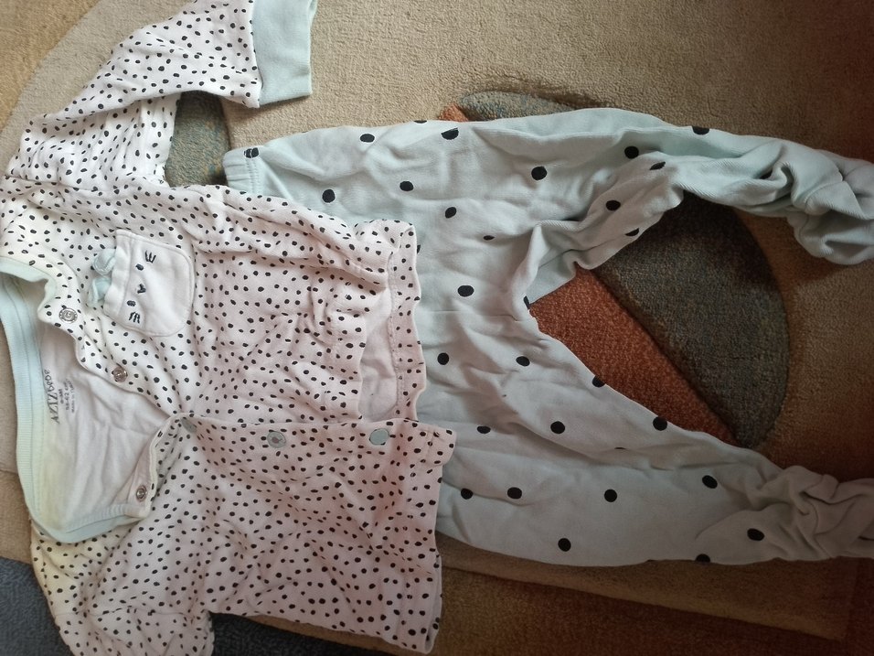 Kız çocukları için uzun kollu, V yakalı ve düğmeli pamuklu pijama takımı. Pastel beyaz renkte, noktalı desende rahat uyku sağlar.