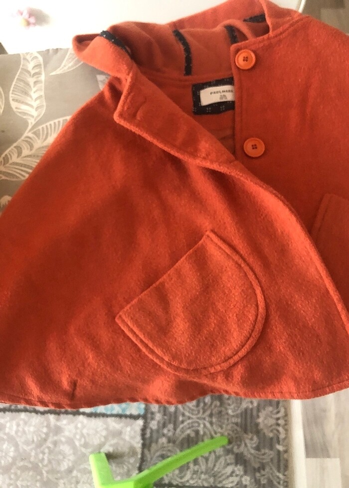 Kaşe panço çok şık sadece iç kısmında bir düğmesi eksik kiremit rengi 3-4 yaş