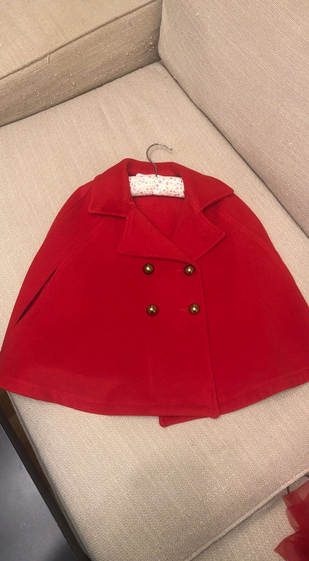 Kırmızı renkte kız çocuk panço 2-3 yaş ama kalıp olarak büyüktür. 3-4 yaş çocuk içinde uygundur.