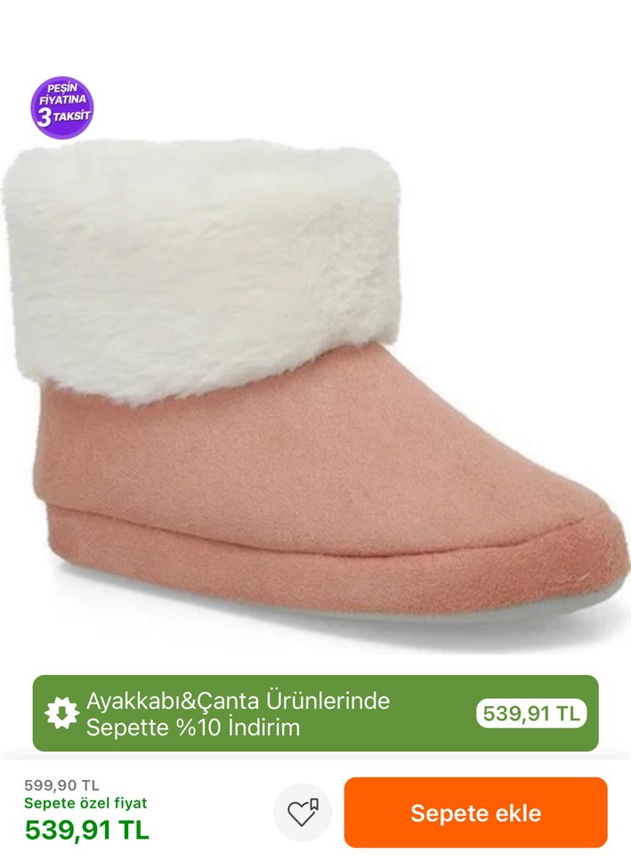 Kız çocukları için pastel pembe renkte, kürklü detaylı sıcak terlik. Düz ve rahat tasarımıyla günlük kullanıma uygundur. Polaris, etiketli. Yanlış numara almışız, iade süresini kaçırdık. 34-35 numara