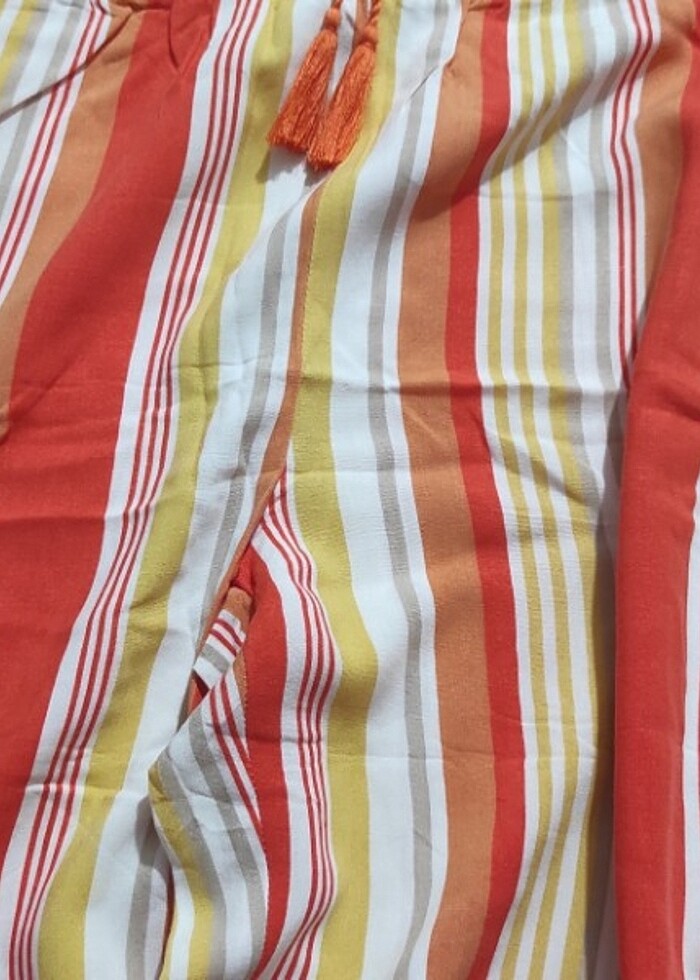 Yazlık bol pantolon. Neredeyse sıfır ayarında, az ve temiz kullanılmıştır. Herhangi bir yerinde bir kusur yoktur. Beden: 12-13 yaş Boy: 152-156 cm
