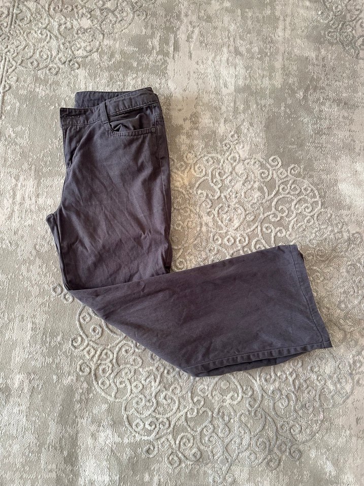 Gri renk keten kumaştan, salaş kesim ve midi boy kadın pantolon, günlük kullanım için zahmetsiz şıklık sunar.