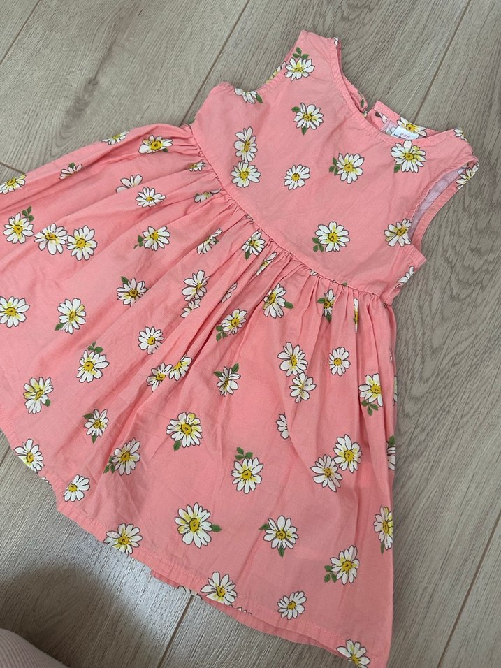 Kız Çocuk Papatya Desenli Pembe Elbise