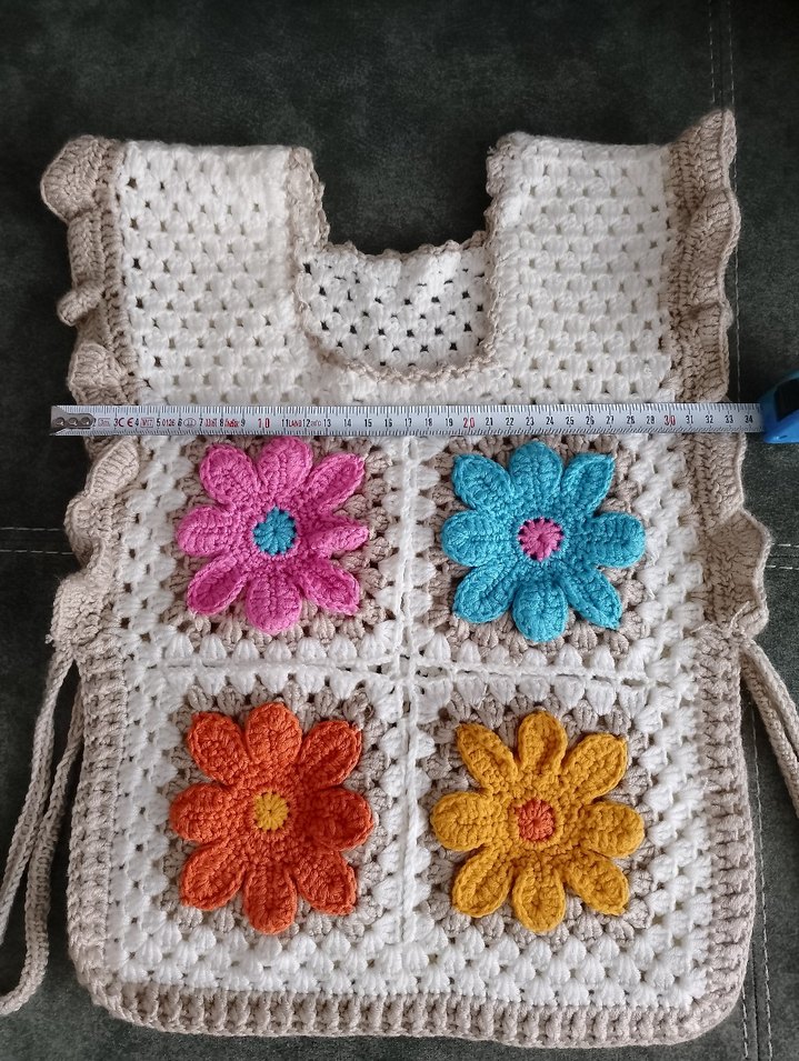 Ürün hiç kullanılmadı hediye geldi kızıma.3 /4 yaşa daha uygundur el emeği olduğu için bedeni bilemedigimden eni ve boyu ölçüp attim.Tig işidir .En 34cm Boy 44 cm. Yanlarda bağlama ipleri mevcut.