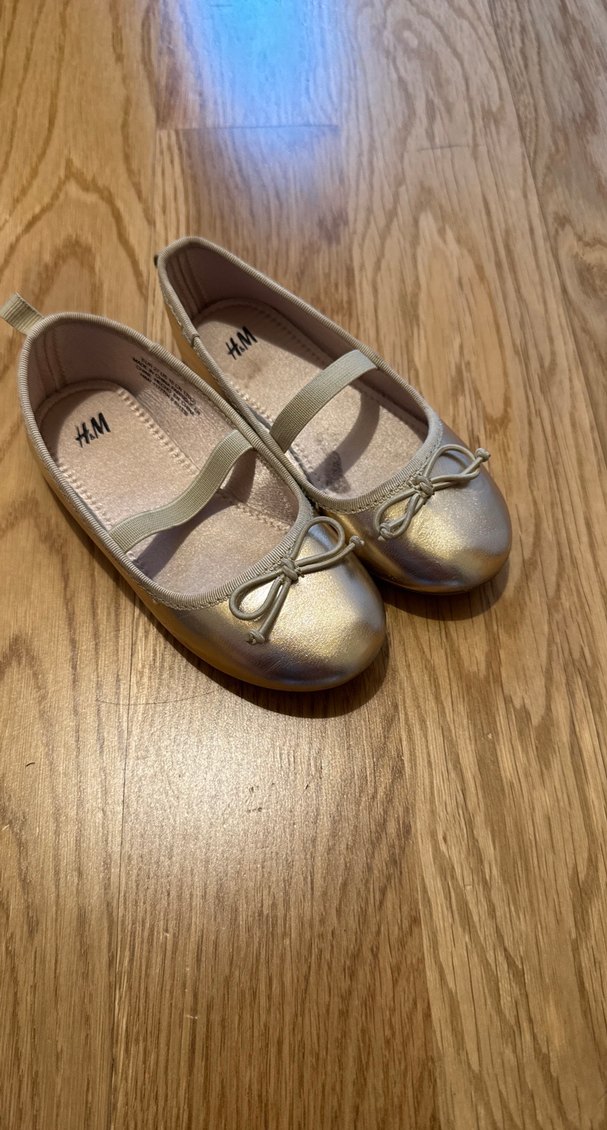 Parlak altın renkli kauçuk kız çocuk babeti, tokalı bant ve küçük fiyonk detayıyla modern klasik tarzda. Marka: H&M.
