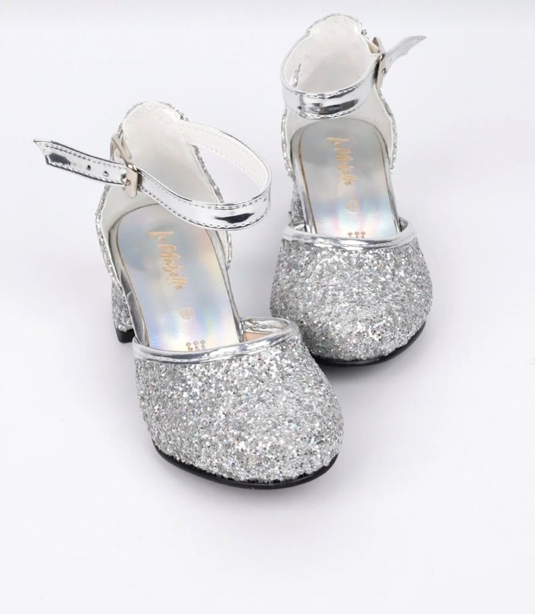 Kız Çocuk Parlak Beyaz Simli Babet