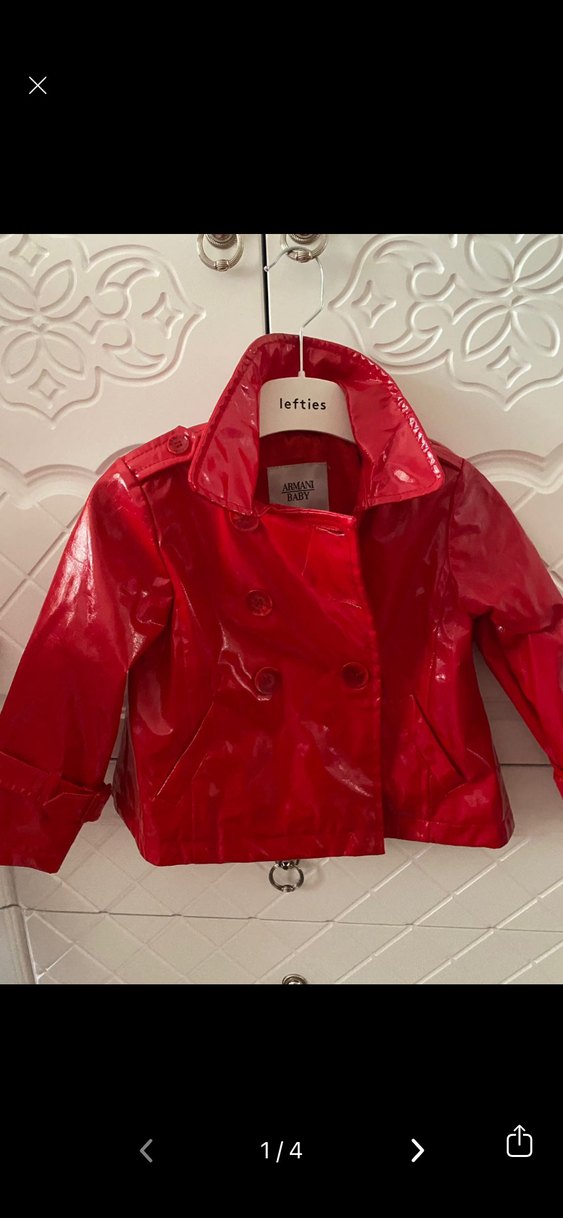 Kız çocukları için parlak kırmızı deri ceket, dar kesim ve kesik yakaya sahip. Çift düğmeli ve desenli, trend sokak stili için uygun. ✨acil taşınma kaynaklı satılık