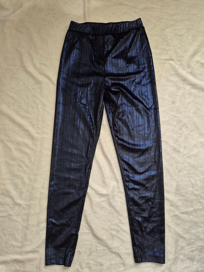 Parlak lacivert, pileli ve normal midi boyda, fit kesim tayt. Sokak modası ve athleisure tarzına uygun, günlük kullanıma ideal. ✨
