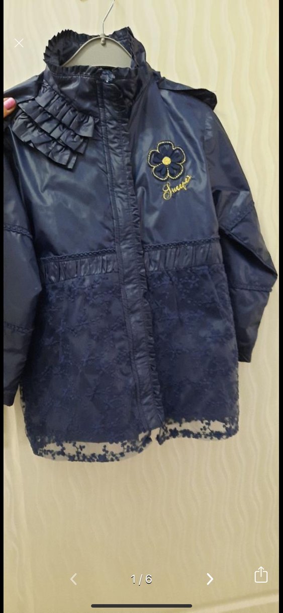 Parlak mavi renkli, nakışlı çiçek desenleri ve fırfır detayları bulunan, dar kesim kız çocuk ceketi. Notched lapel yaka ile şık ve rahat sokak stili sunar.