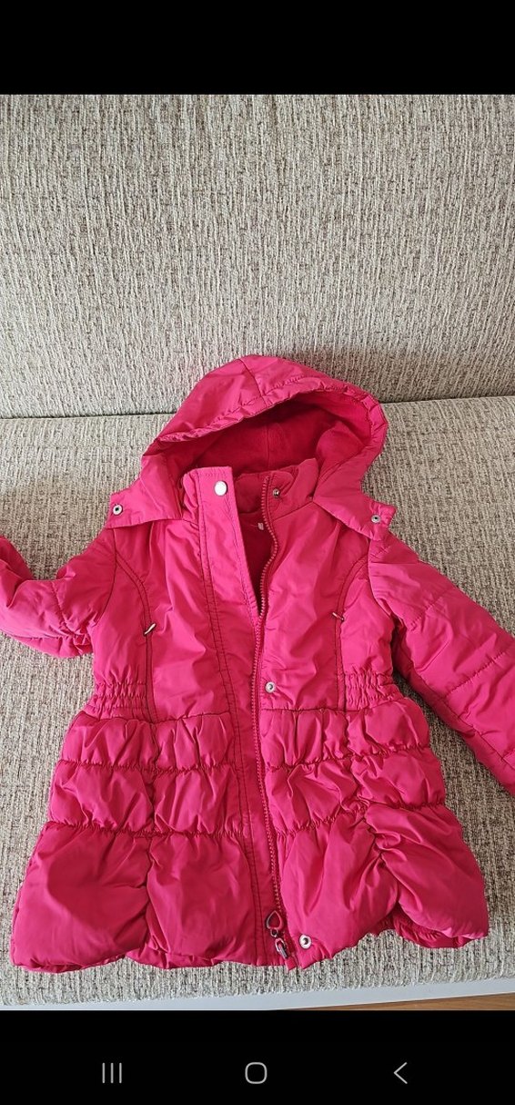 Parlak pembe renkte, düğmeli ve kesik yaka detaylı kız çocuk kabanı. Yumuşak ve sıcak kumaştan, sokak tarzı için uygundur.