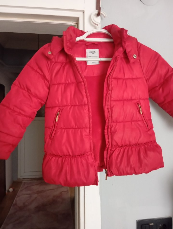 Parlak pembe renkli, fermuarlı ve yumuşak iç astarlı kız çocuk montu. Notlu yaka tasarımı ve sokak stiline uygun kesimi vardır.