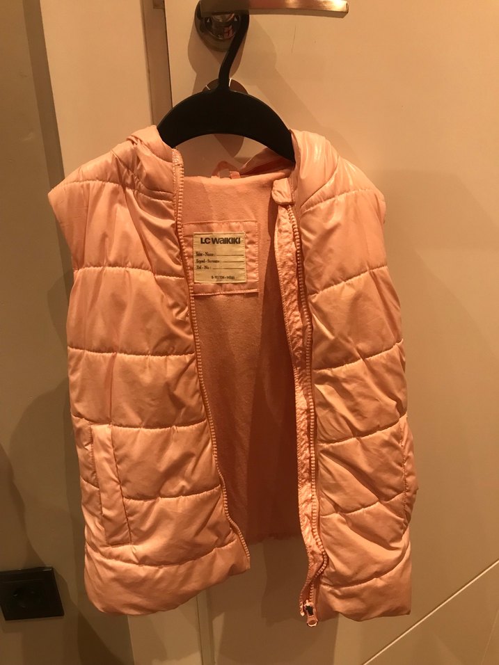 Parlak pembe renkte, fermuarlı ve kesimli yaka detaylı kız çocuk yeleği. Kolsuz ve yumuşak, sıcak tutan kumaştan üretilmiştir.