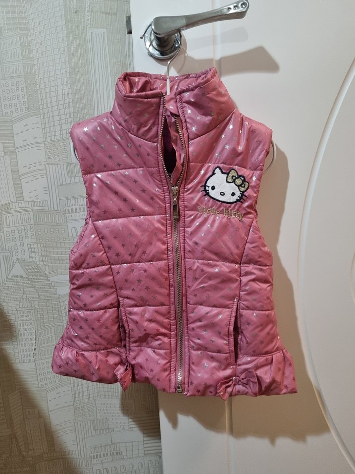 Fermuarlı, straplez yakalı, parlak pembe sentetik kumaştan, nakış detaylı kız çocuk yeleği. Sokak modasına uygun, vücuda oturan kesim.