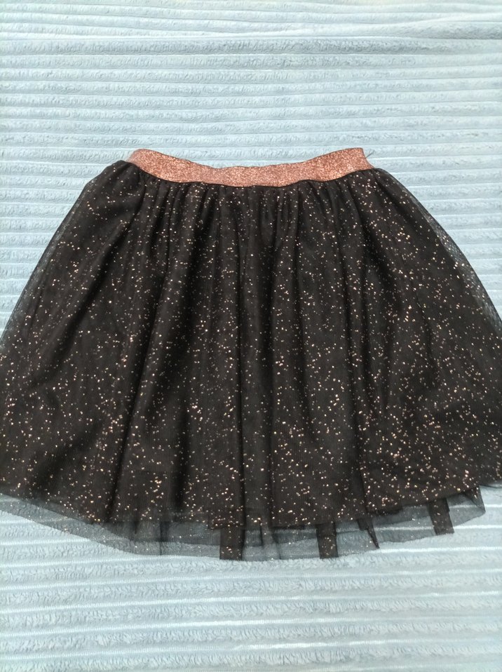 Parlak detaylı ve ışıltılı kemerli, esnek yapıda siyah kız çocuk eteği. ✨