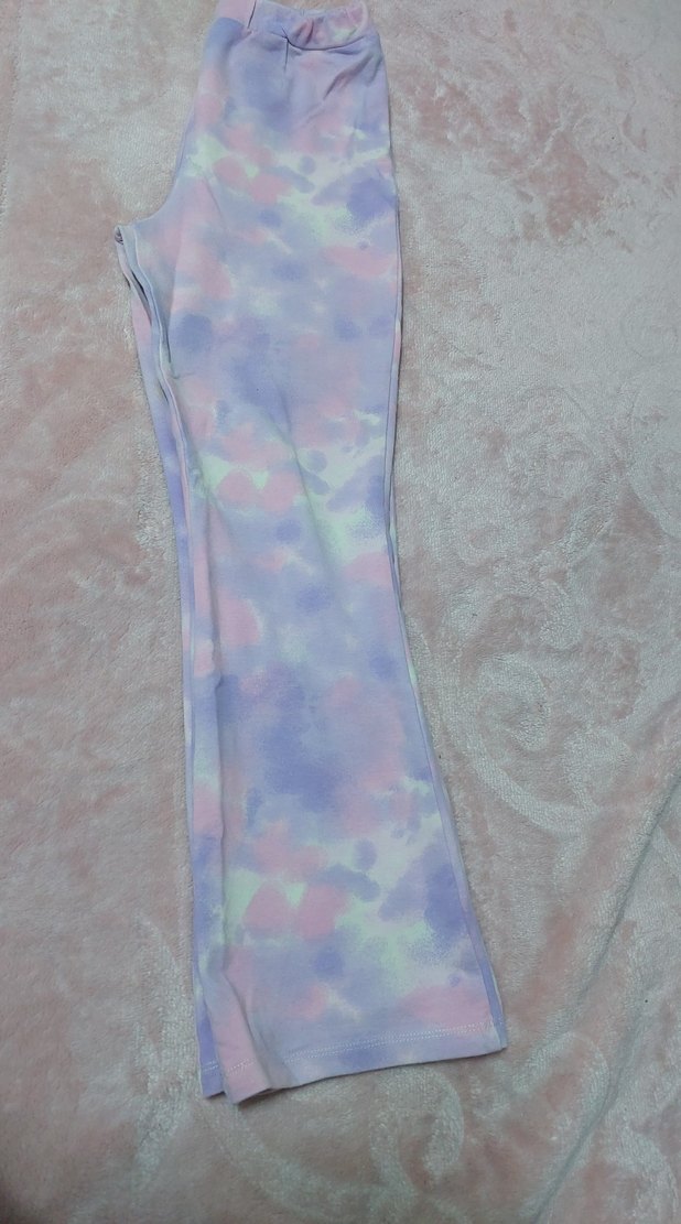 Pastel batik desenli, elastik sentetik kumaştan yapılmış, kız çocukları için dar kesim tayt.