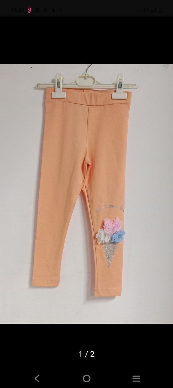 Yumuşak kumaştan, elastik bel bantlı, pastel çiçek baskılı, sokak stili kız çocuk bej taytı.