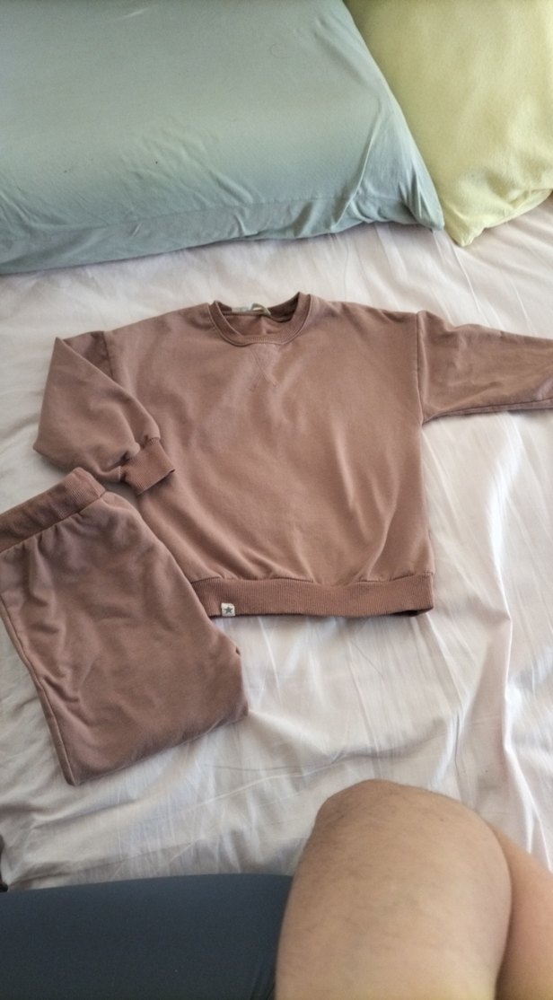 cigit narka...5/6 yaş. Kız çocukları için pastel kahverengi, uzun kollu, yuvarlak yakalı, rahat kesim ve sade tasarımlı sweatshirt ve eşofman takımı. hiçbir kusuru yok boydan olmadığı için satıyorum.