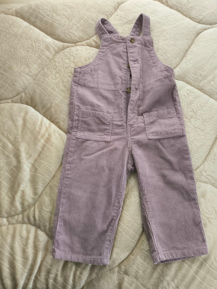 Kız çocuklar için pastel mor renkte, düğmeli ön kısmı olan salopet. Kolsuz ve rahat kesimdir, yumuşak ve sıcak kumaştan üretilmiştir. Sade ve desensiz tarzda.
