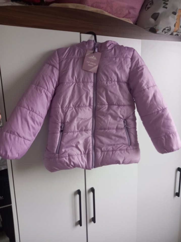 Fermuarlı ve cep detaylı, pastel mor renkli kız çocuk montu. Yumuşak ve sıcak kumaşlı, günlük sokak stili için uygun.