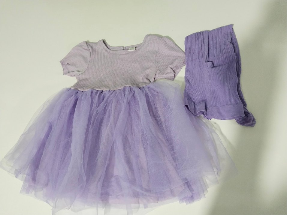 Pamuk kumaştan yapılmış, kısa kollu ve bisiklet yaka, pilili etekli pastel mor kız çocuk elbisesi. Düz ve sade tasarıma sahiptir.