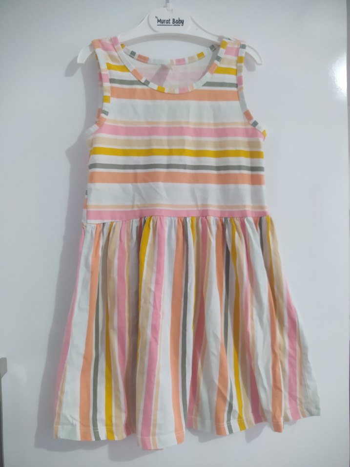 Kız Çocuk Pastel Renkli Çizgili Elbise 5-6 yaş