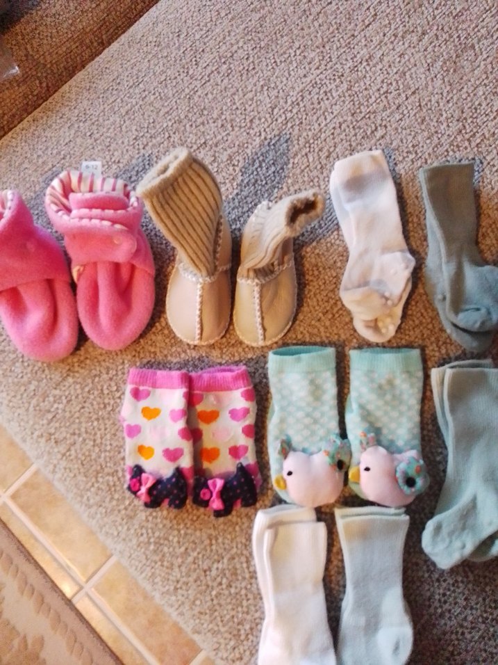 Kız çocukları için pastel renkte, yumuşak ve sıcak örgü çorap seti. Desenleri kalp ve sade modellerden oluşuyor. 7 çift bebek çorabı,deri patik,polar patik, çoraplar kaymaz taban sadece yıkandı