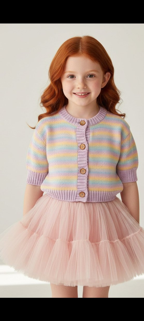 Kız çocukları için pastel renklerin muhteşem uyumu ile harika yarım kollu hirka