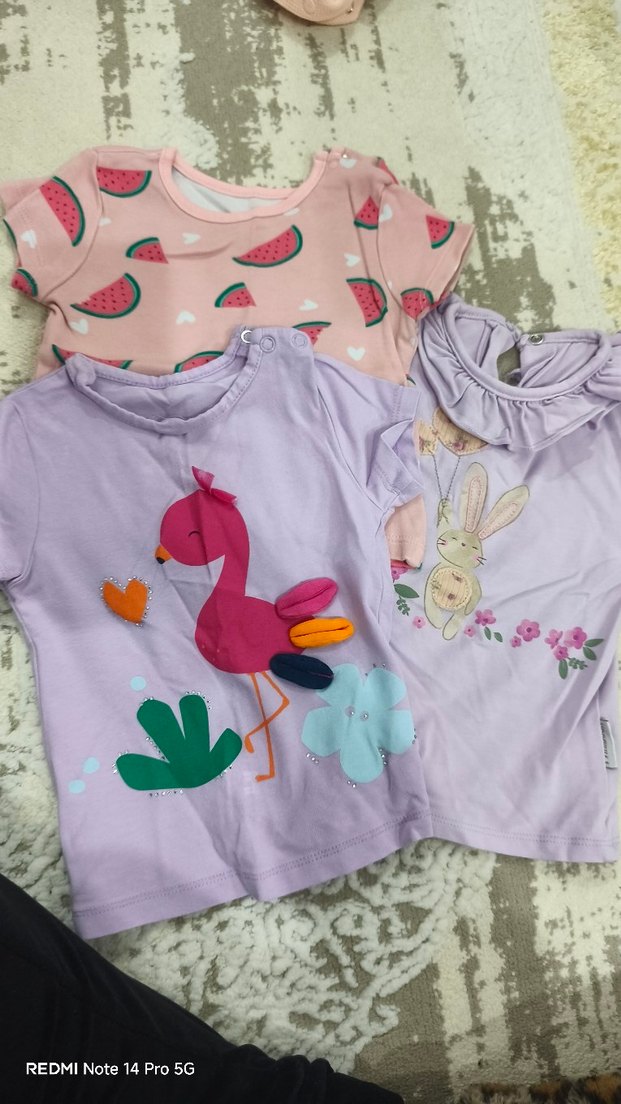 3adet yumuşak pamuktan üretilmiş, kısa kollu, bisiklet yakalı ve baskılı desenli kız çocuk tişörtleri. Fırfır detaylarıyla sokak stiline uygun rahat kesim.