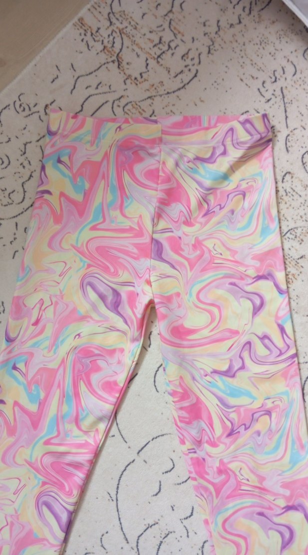 Elastik sentetik kumaştan yapılmış, pastel renkli tie-dye desenli, bohem tarzına uygun, sokak giyimi için kız çocukları taytı.