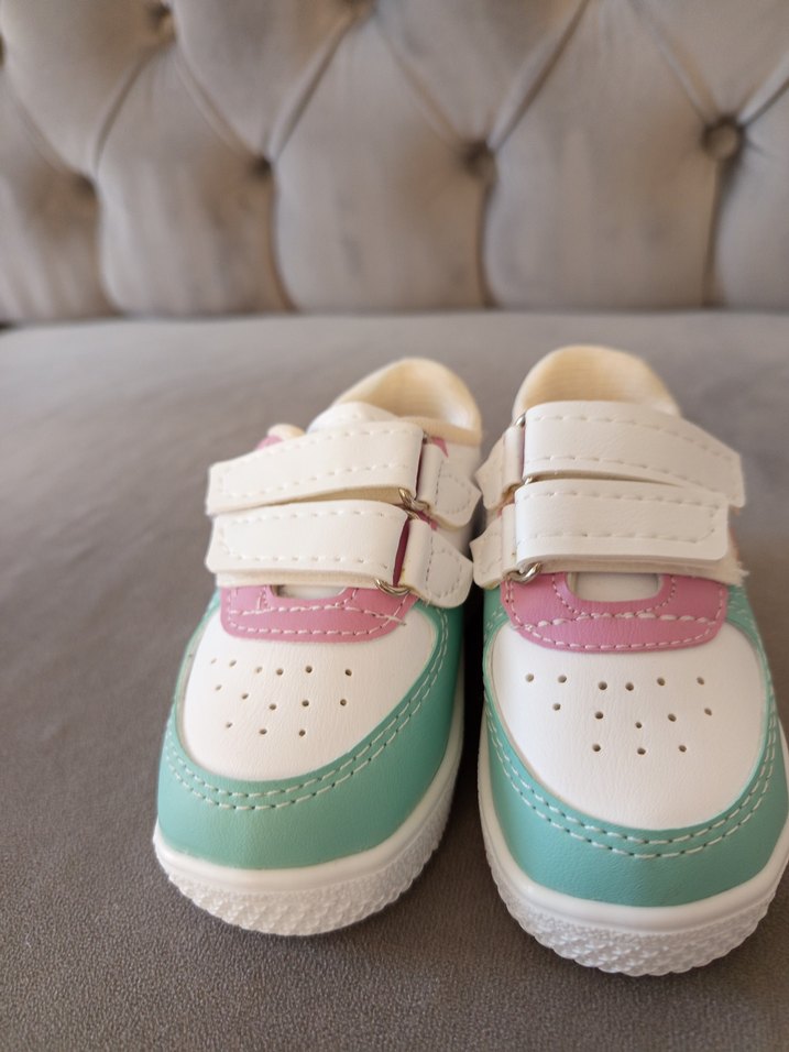 Kız çocukları için pastel çok renkli, tokalı bantlı ve kauçuk tabanlı spor ayakkabılar, trend sokak stili için uygundur.