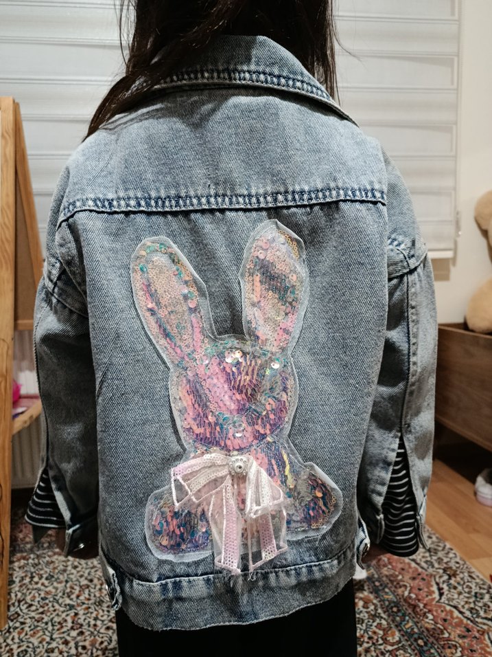 Kız Çocuk Payet İşlemeli Kot Ceket