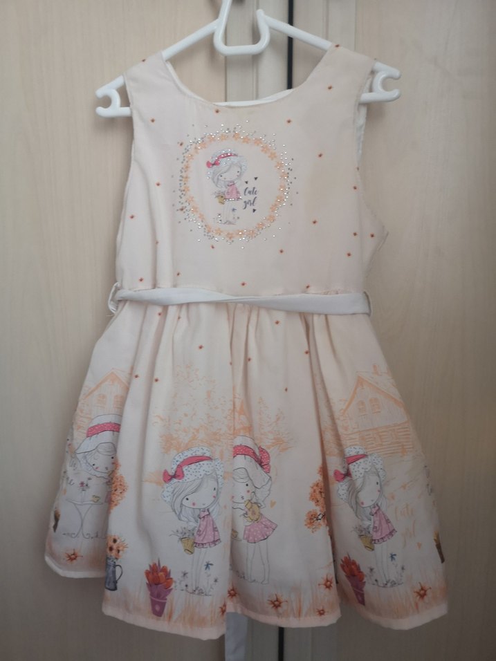 Kız Çocuk Payetli Baskılı Kolsuz Elbise