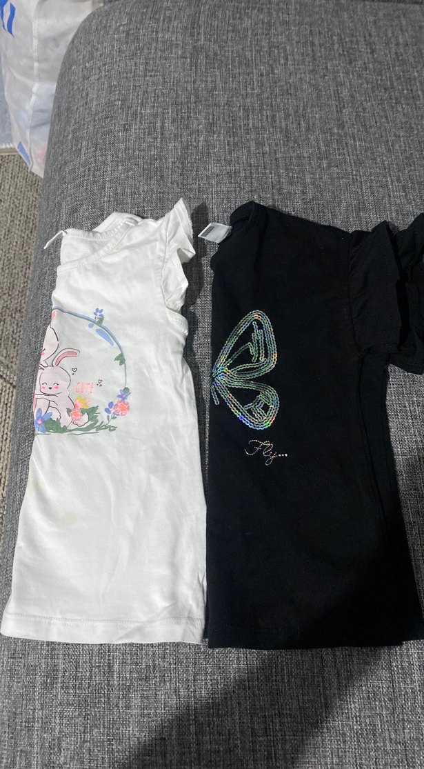 Pamuklu kumaştan, kısa kollu, straplez, baskılı ve payet detaylı kız çocuk tişörtü. Beyaz ve siyah renk seçenekleri mevcut.✨