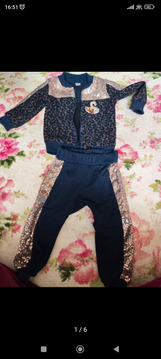 Kız çocukları için yılan desenli ve payet detaylı, bol kesim eşofman takımı. Yuvarlak yaka ve uzun kolludur, trend sokak stiline uygundur.